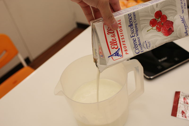 這裡我來舉個簡單的例子,以牛奶為例。讀者們常見到我做牛奶底冰淇淋,其中要大量使用鮮奶來作,為求高品質的義式冰淇淋,我都以超市新鮮販售的林鳳營鮮奶,當然一公升要六、七十元的成本。若是以沖泡的即溶奶粉來當牛奶底冰淇淋材料,一公升牛奶成本在二、三十元之間,不僅成本低,又可以解決夏季鮮奶荒的問題。