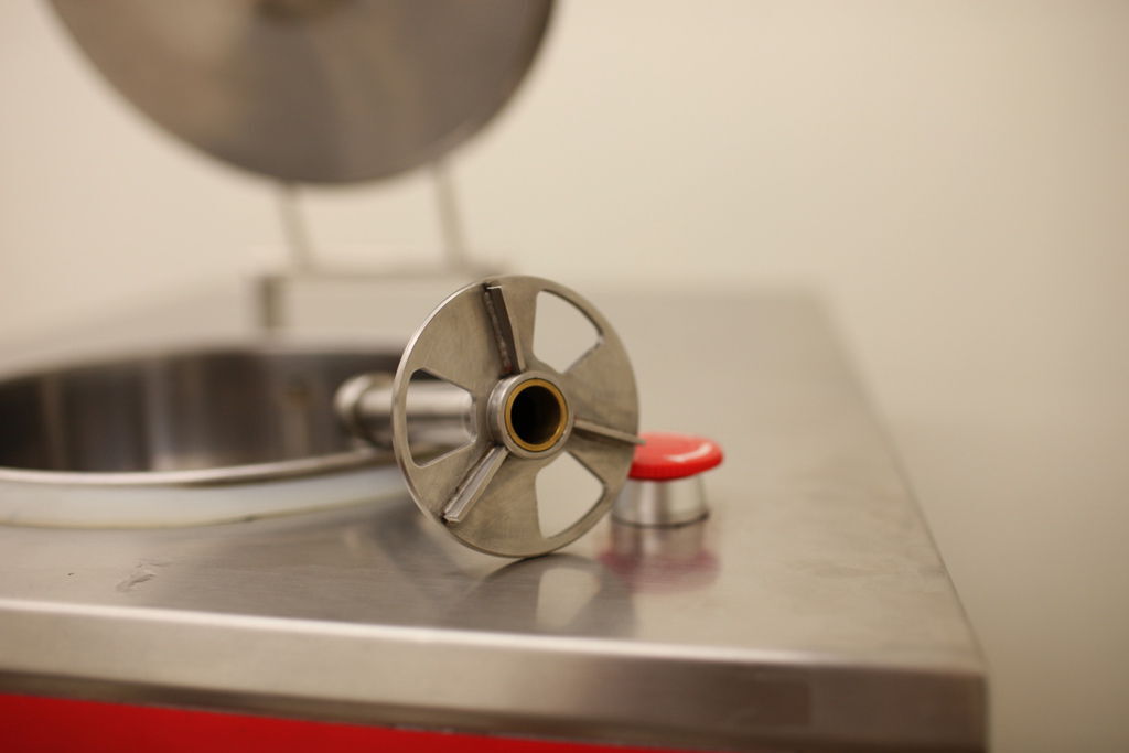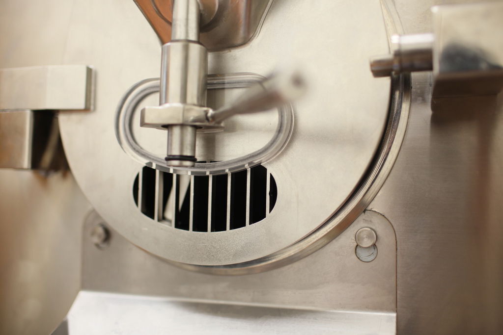 打開大門,可以看到內部的結構,三片特製鋼刀,緊密地與冷凍缸內壁相連,特殊的結構,可以製作出最佳冰淇淋的口感。