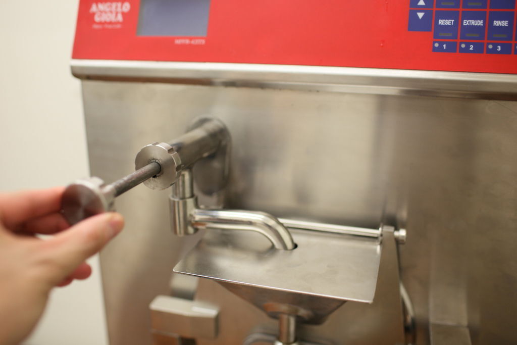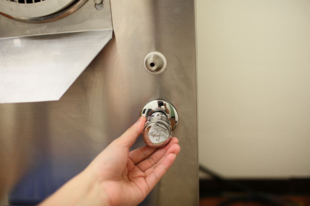 輕輕拉開閥門,就可以讓加熱過冰淇淋原料流入。