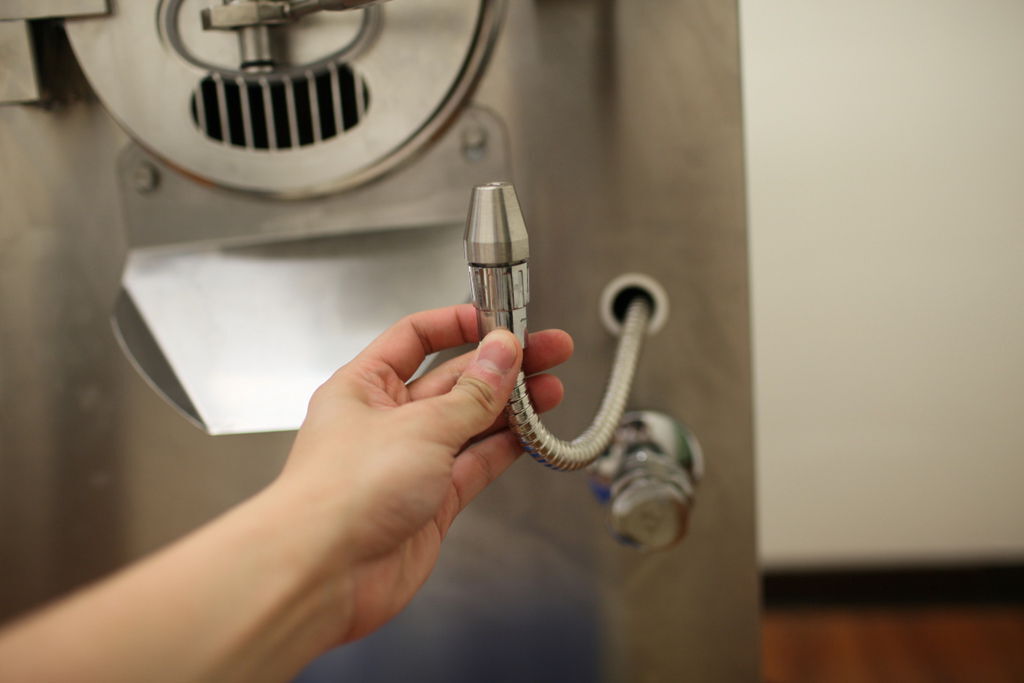 這個機台本身附有清洗裝置,方便十足,可節省更換冰淇淋口味清洗的時間。