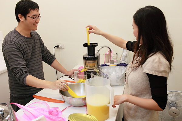 今天我們就來做一球新鮮的奇異果冰淇淋(Sorbet),感謝小雪人的老闆娘(Jennifer)也來一起幫忙。