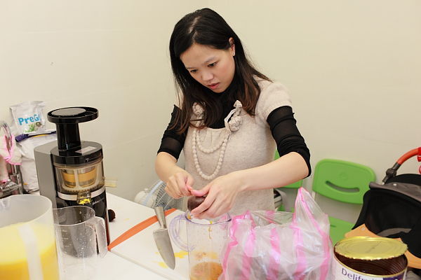 我看到珍妮佛用左手拿刀,好害怕哦,尤其是這麼大一支的菜刀。阿喨下次買一支好用又小支一點的水果刀吧。