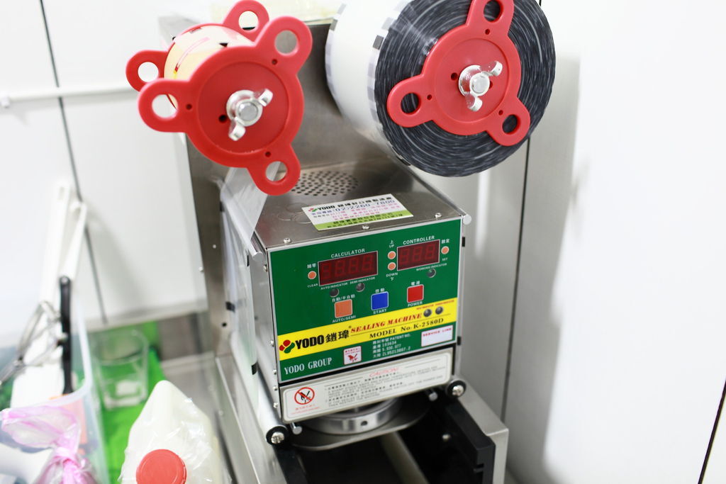 這台封膜機,用來封冰淇淋杯的口,這樣比較衛生,要價NT$20,000。