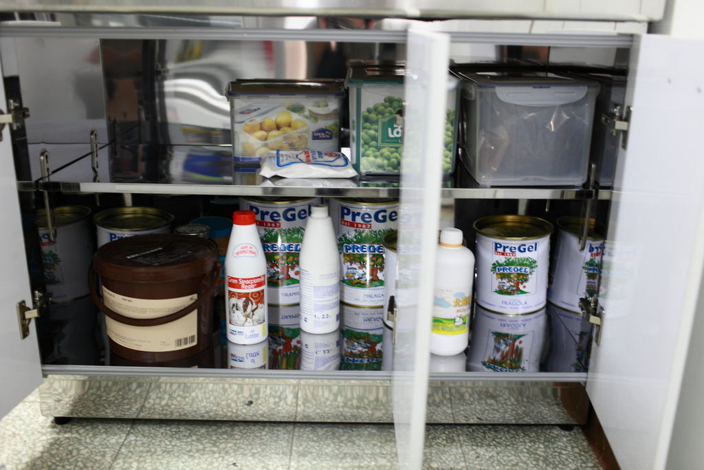 相關的備材都放置離地十公分以上的距離,這也是安全衛生的考量。