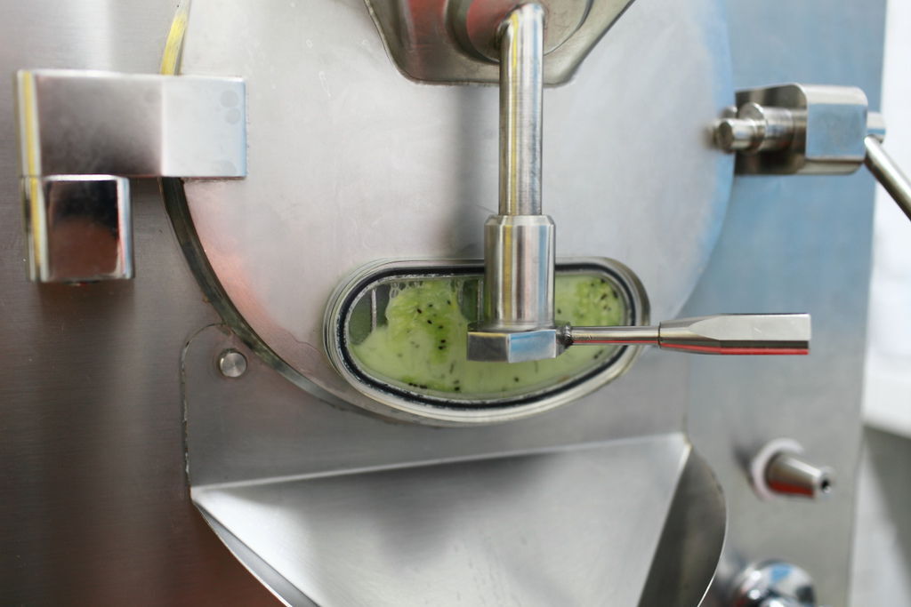其實這樣後續資金的支出就比較少了,壓力也沒那麼大,沒有負面的壓力比較好做事。只是要做中央廚房式的冰淇淋事業,設備的承載量要大一些,例如:冰箱要大一些,而冰淇淋機的產量也要大一點,這一點我在幫他們規劃時就有想到。其實是可以用老化機和製冰機來配合,但未來若是開店的話,有些口味的冰淇淋會受限制,而生意好時做冰淇淋的速度也會慢一些,原因是差在我們這台上面可以加熱殺菌,去煮不同口味的原料,彈性比較大。所以我們做了一台可以一次最大產量在8-10公升左右的三合一冰淇淋機,可以去應付較大的訂單,三合一的冰淇淋也是未來的趨勢。