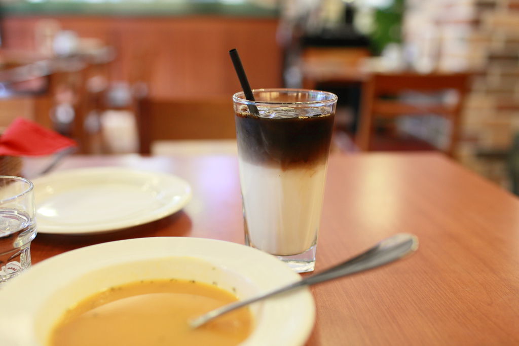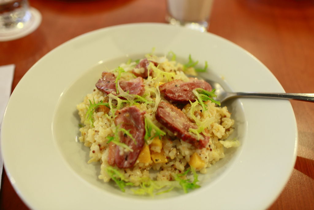 義大利~櫻桃鴨胸蜜桃燉飯,和一杯香草拿鐵冰咖啡。