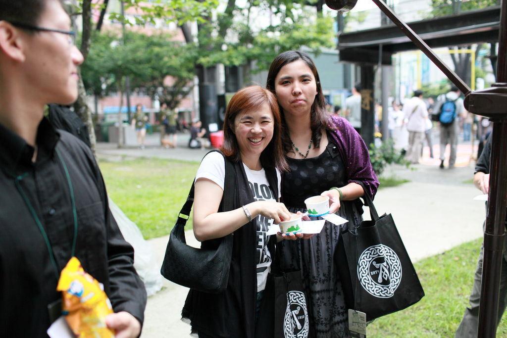 所以我從頭到尾一直挖、一直挖、一直挖、一直挖、一直挖、一直挖、一直挖、一直挖、一直挖、一直挖*578次,挖到手都快斷了,怎麼大家都排我這裡,那頭還一直廣播叫大家來排我的冰淇淋,想休息一下都沒時間。這二張照片還是我先停下來拍一下才有的,所以海蒂妳們那裡的照片來了,要補給我有我挖冰淇淋盛況的照片。直到冰淇淋全部挖完,我才能休息,雖然累但很開心,受到這麼多人的肯定,大受好評的感覺真HAPPY。而我的攤位是當天最受歡迎的,還有人說這個威士忌的冰淇淋,也是從英國來的嗎?不然怎麼會有這樣的冰淇淋。我說~小姐這是我做的!錯過了今天,再也不可能吃到這種酒所做的冰淇淋了,她們大呼這太神奇了。還有人跑來向我要名片,所以我說的沒錯吧,會做冰淇淋的,是很容易交到朋友的,常有人會想要和你做朋友的呢。