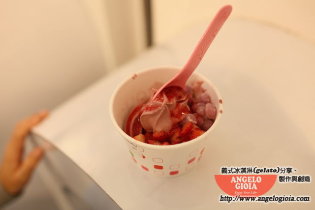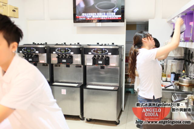 不過話說回來,冰淇淋還是義式的比較好吃耶,也不是我特別偏好義式冰淇淋。也許可能就是機器的關係,霜淇淋打出來的口感就是沒有義式冰淇淋來得好。又或是因為冷凝速度、刮刀性能,抑或是空氣混入比例造成的差別嗎?論以味道相配的話,而這家的原料配方事實上是調整得不錯,不過吃起來好像感覺上仍是差一點,我在猜想啦,有可能是原料沒有經過加熱再冷凝的過程嗎?其實冰淇淋的原料以冷底直接攪拌後,再製成冰淇淋,在各食材之間的分子鍵結的緊密度就無法達到比好的程度。