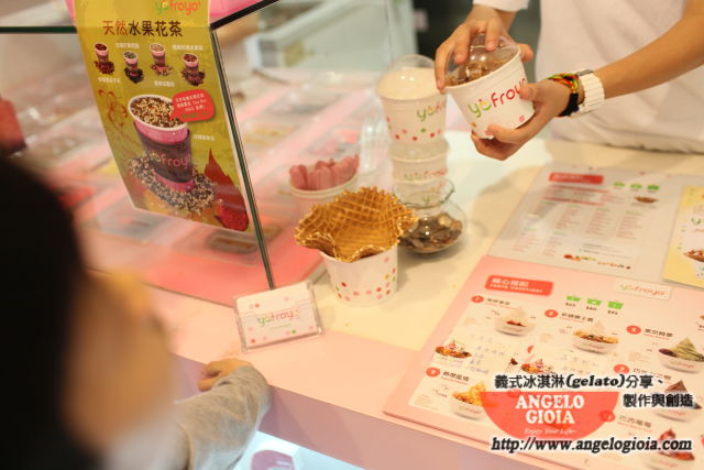 放心~~這家不是地雷區,哪這麼倒楣,吃兩家中兩家。看到下午三點還坐滿滿的人,就知道這家不會太差。的確,小盒的65元,滿合理的,配料和口味都比另一家好多了。到目前為止總計吃過了三家優格的霜淇淋,只有這家還值得去吃,尤其是現場直做的餅干杯,在烘焙時香氣四溢,這個就加分不少了。今天吃的是巴西莓莓,酸度和甜度有融合,再配上淋醬與其他的果粒,這是ok的啦。