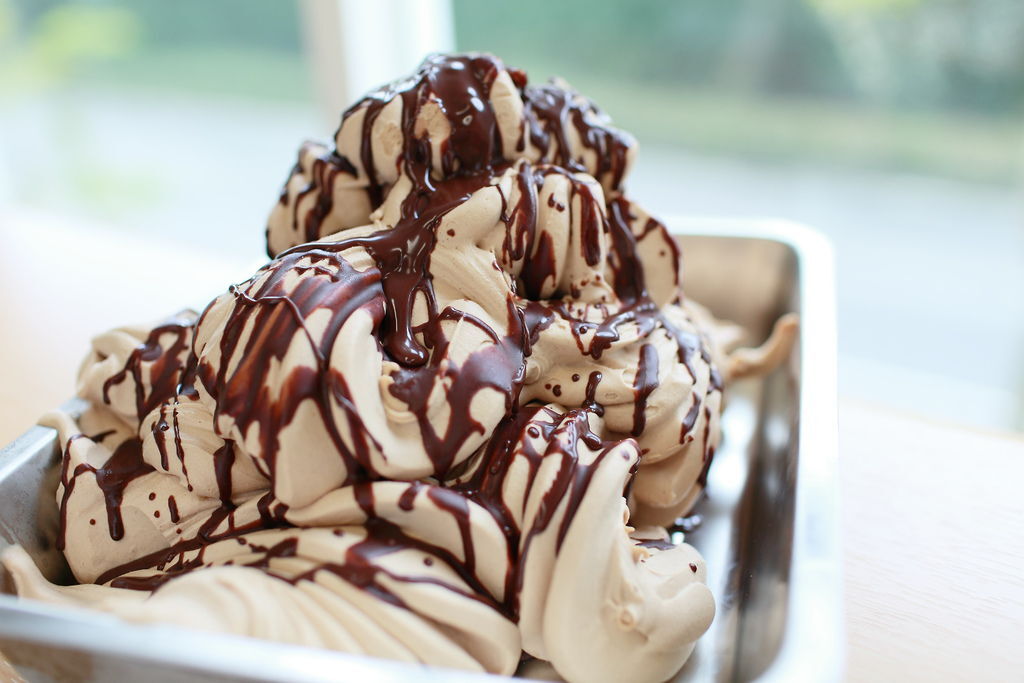 我們可以將打出來的冰淇淋,用刮刀抹平後,再刮出堆畳出像小山的形狀,再來裝飾它。
