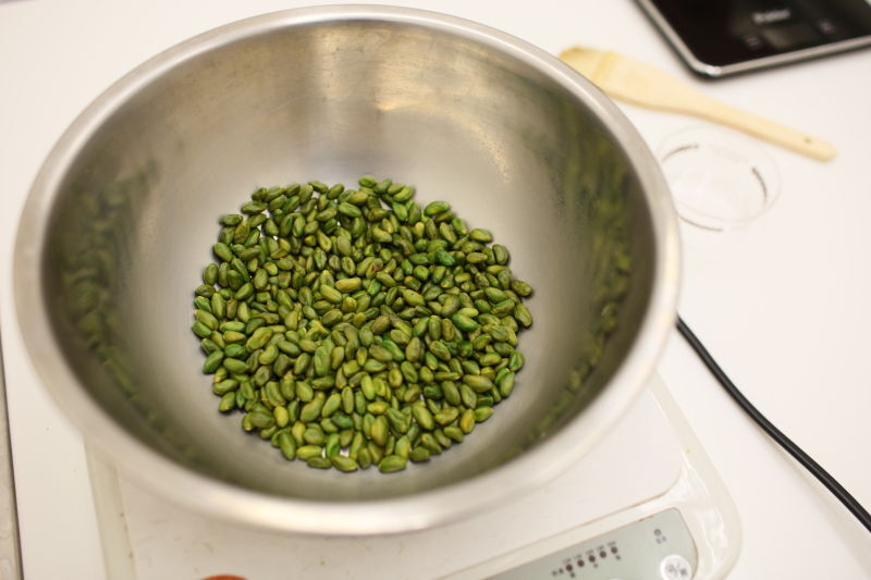義式冰淇淋之所以為什麼那麼令我著迷的地方,除了分享和製作外,就是可以創造出新的口味。只要是好的味道,都可以透過巧思和創意入味於冰淇淋,就算一時做不出來,也可以重覆嚐試改良味道直到成功為止。把上次做的開心果口味的冰淇淋請所有的朋友吃過後,一致的感覺就是這個味道好香,但就說不出是開心果的味道。不過這也難怪,雖然烘烤過的香味迷人,畢竟吃過義大利西西里所產的綠皮開心果的人是少數,大家始終對這個味道總是陌生的。為尋找出大家記憶中的味道,過年時會吃開心果的味道,那種香氣十足又略帶點鹹鹹的味道。這次我會使用市面買到已烘培過的開心果,但這個味道是否可進入冰淇淋,還真是一大挑戰。