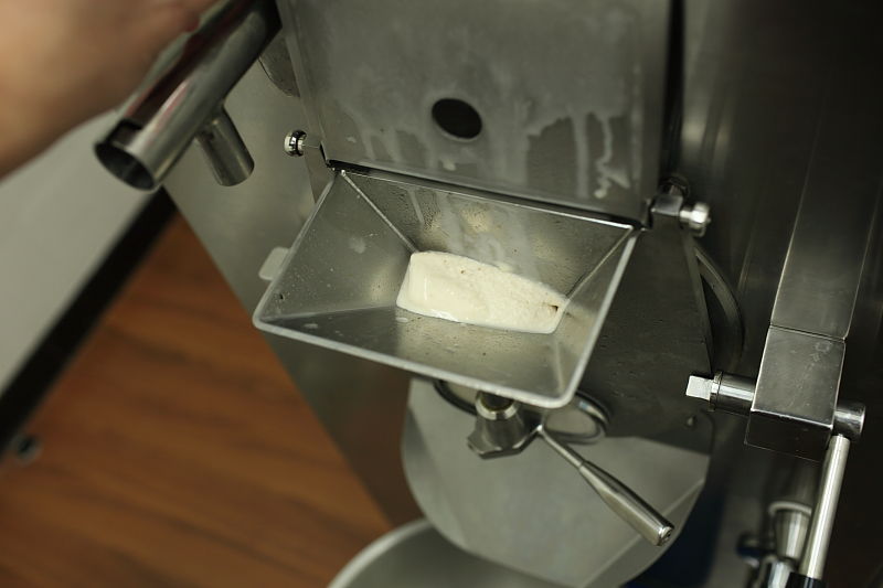 我第一次喝到榛果拿鐵,三種香味(咖啡、奶香、榛果)集合在一起,的確是滿迷人的,難怪可以列為國民美食,若這個可以做成冰淇淋,在這炎炎的夏日一定是許多喜歡冰品的最愛。剛好牛奶底的冰淇淋就很適合來做這種口味,星巴克是利用高溫蒸氣來打出又香又濃稠的奶泡,但我們義式冰淇淋卻是不能 這樣做,反而是要用很足夠份量的鮮奶,再上足夠的固形物,讓冰淇淋的內容充實,然後與榛果醬和咖啡一起調味,就可以創造出榛果拿鐵冰淇淋了。