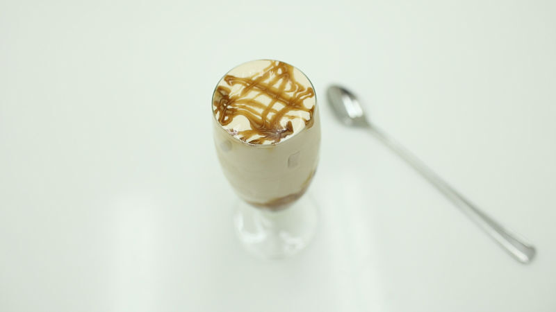 最後,建議食用方法,在具有景觀窗的高樓裡,搭配一本時尚的雜誌,悠閒地品嚐這一杯咖啡冰淇淋。