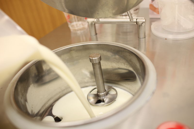 這時我們一樣把牛奶冰淇淋的基底給調出來,忘了怎麼調的同學們,可以回去參考[教學]義式冰淇淋製作的文章分類中去找一下,這裡我就不重覆再說了,但還是重覆一句,牛奶冰淇淋的基底是一切製作冰淇淋的基礎,沒有好的基礎,做出來的冰淇淋一定不夠好吃,所以大家一定要在這裡下功夫,用心地學習。