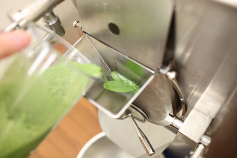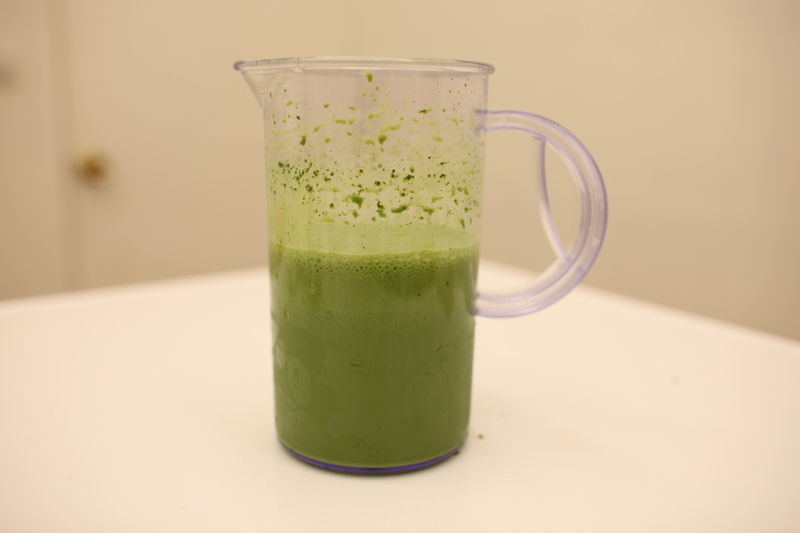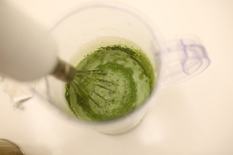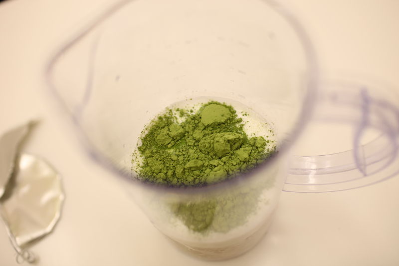 來看看這抹茶粉和牛奶混好的顏色,真美~~又是那句話,外貌協會表示:漂亮一定好吃。這裡給大家說明一件事,抹茶粉是天然的綠色植物,任何的加熱方式都會讓綠色變質,有可能顏色會淡掉,也有可能會變黃,這也就是我為什麼分兩個階段,在第二階段加入,不去殺菌鍋裡加熱。