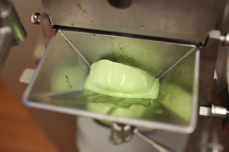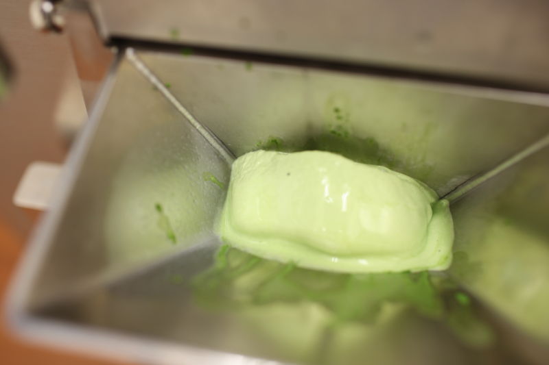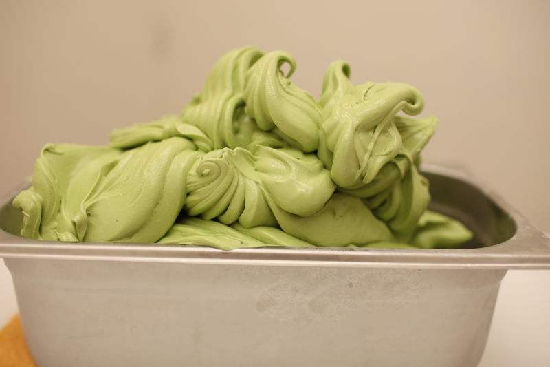 我不是沒用過其他家的抹茶粉,但他們都有一種苦味,尤其是台灣出的抹茶粉,抹茶的茶香味總是不太夠,出來的反而是苦味。但用日本進口的苦味就不見了,這一點還是日本抹茶比較厲害。所以那天在日式料理店,刮了一點放在嘴裡,我就知道這個抹茶粉的品質真的不錯,有很濃厚的抹茶茶香味,而且它一點都不苦,不然做出苦的冰淇淋,哪有人要吃呢?