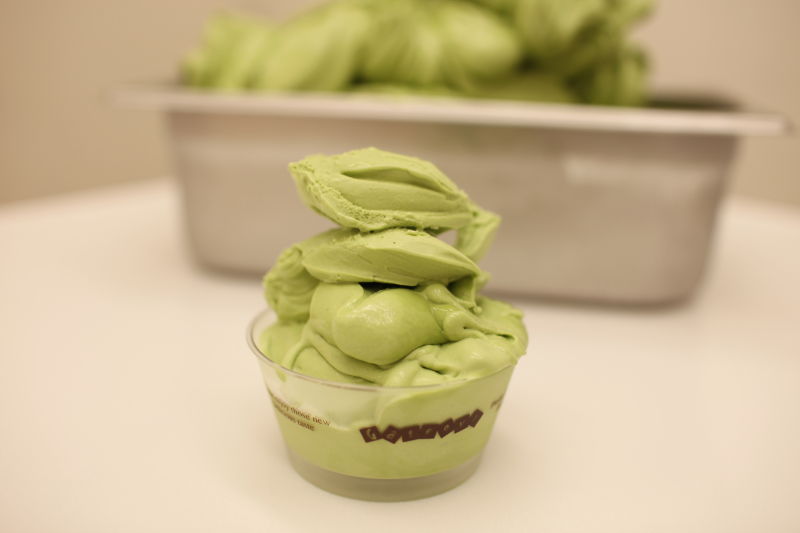 看到了嗎?看到了嗎?我早就先試嚐一口味道了,基本上的綿密滑順的口感都很好,吃了之後這味道好奇妙哦,剛嚐時有濃濃的奶香味,又香又甜,吞下去之後茶香味的餘韻就出來了,莫非這就是好茶的回甘嗎?抹茶的味道就是這樣,好....好....好日本哦,讓我好想去日本哦,我已經有兩年沒去了,明年三月我一定要去京都賞櫻,我會多準備一個空的旅行箱,來裝所有的日本名產,當然也會多多採購屬於冰淇淋原料的好食材。