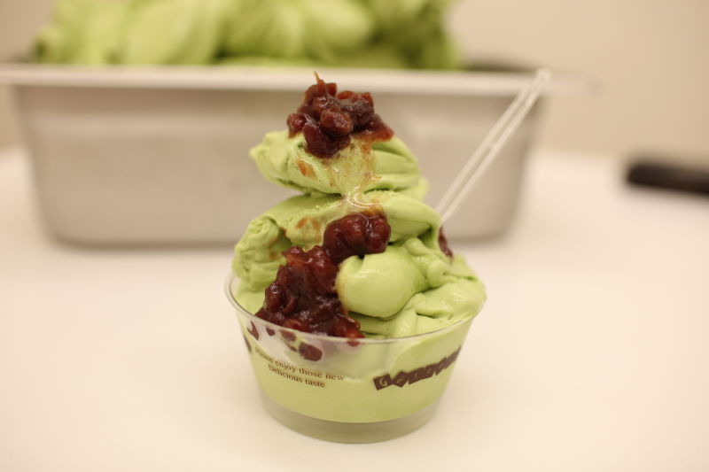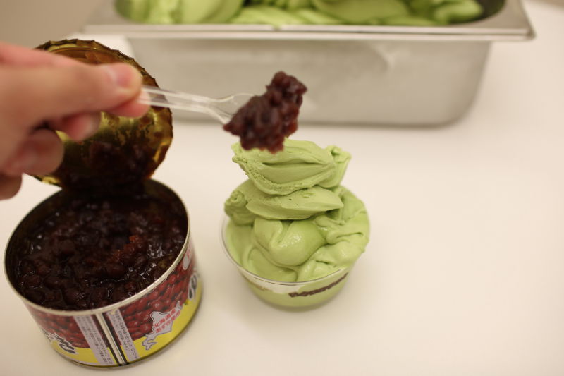 這個北海道來的蜜紅豆,就是讓抹茶冰淇淋變高級了,看紅豆從抹茶冰淇淋的表面滾了下來,好軟滑的冰淇淋,流下濃郁的冰淇淋,冰友呀~~最好吃了!