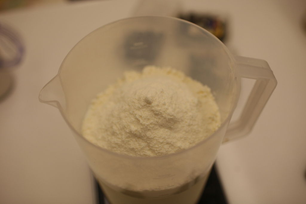 還是重複再說一次,優格不能用太高的溫度去加熱均質,所以我們先取一部分的牛奶和優格粉攪拌後,先靜置一旁等後製冰時一同加入。
