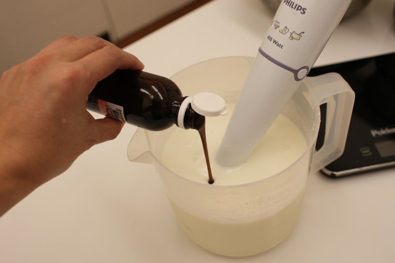 一、先將1-5項以攪拌棒攪拌均勻後,加熱均質到85度C後,投入製冰桶製作冰淇淋。