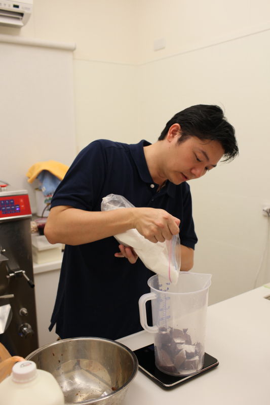 一、先將1-4項以攪拌棒攪拌均勻後,加熱均質到80度C後,投入製冰桶製作冰淇淋。