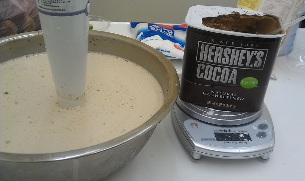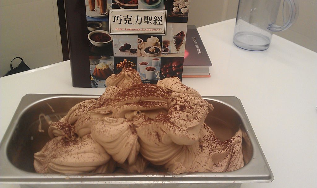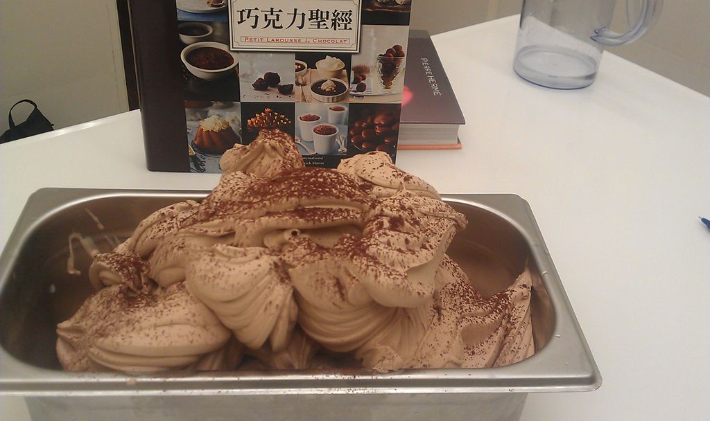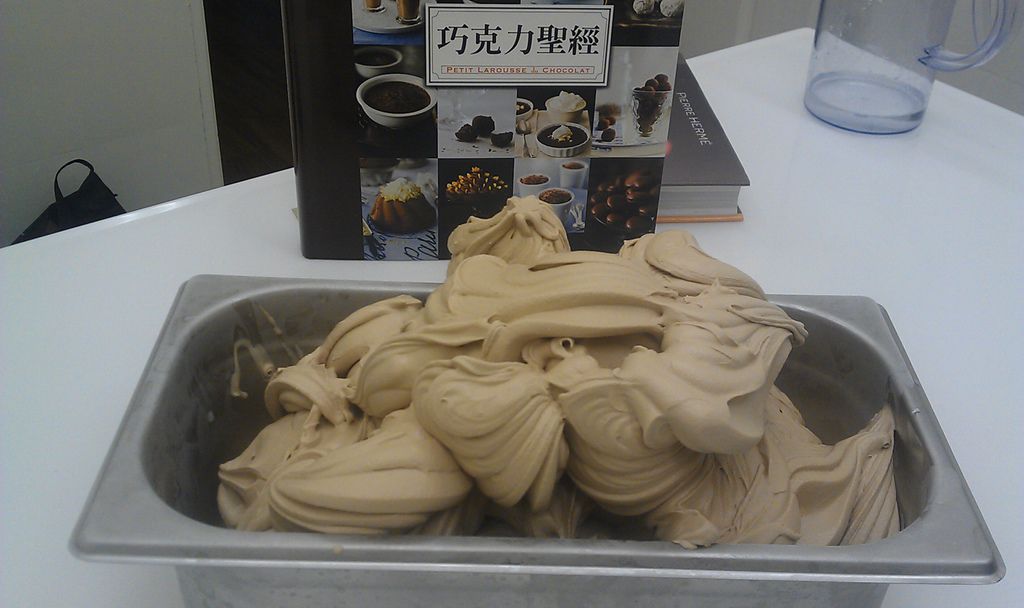 一、先將主原料1到7項以攪拌棒均勻後,整體倒入製冰桶製作出冰淇淋即可。