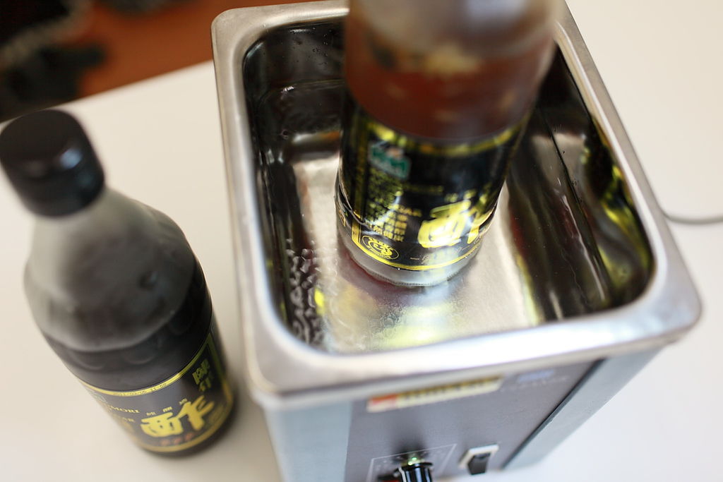 若能加速釀造的時間,一定很棒。曾經在電視上看到,日本家庭主婦為了釀梅子酒,要加速熟成,曾經有使用過超音波方式來振盪,而中間介質的水可以放入溫水的話,速度會更快。有些人會說為什麼不用力搖搖就好,也是一樣的效果,當然不一樣囉,原因就出在力量不夠,也不均勻,受力點也不同。為何用力搖後力量還是不夠呢?因為用力搖只是讓大分子的晃動,這無助於食物裡風味的增添。但若是用超音波來振的話,這種微分子的運動,利用高頻率比較能讓食物裡的微小分子跑出來,反而這樣力量是非常強大的。
