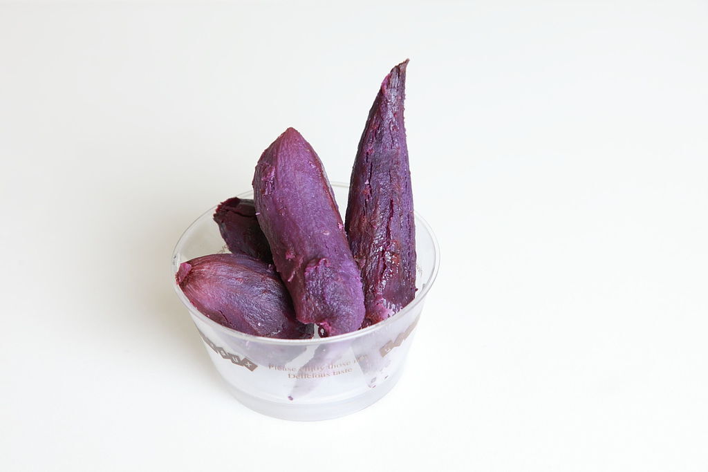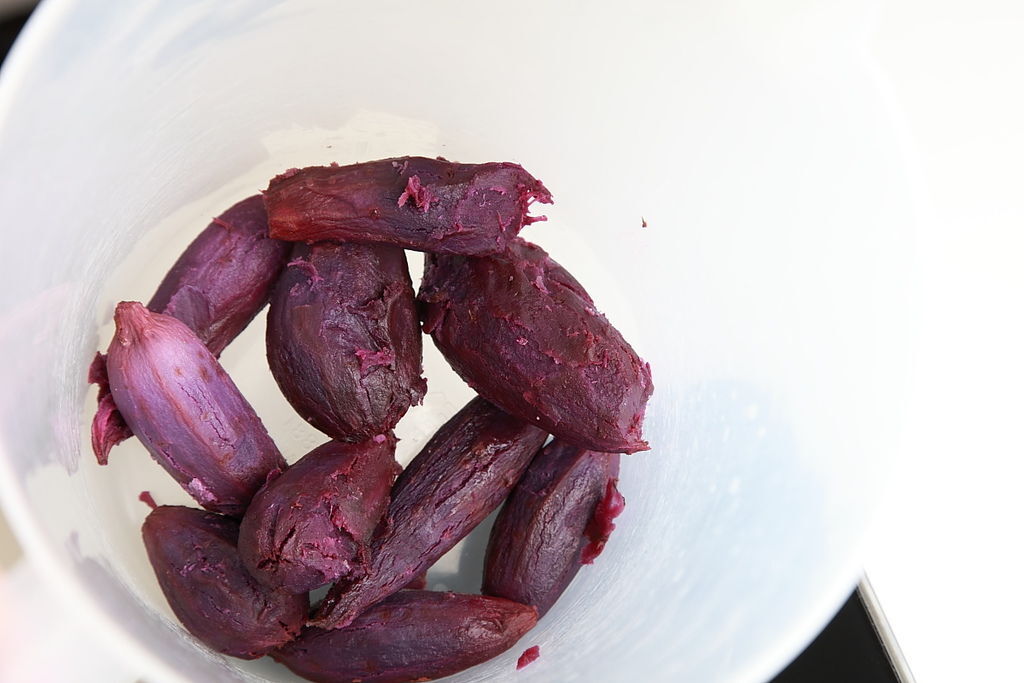 紫甜薯(芋心蕃薯),有較一般地瓜濃郁的香氣,在外觀實在紫得讓人覺耀眼,像是埋在土地裡的紫寶石。做成冰淇淋有比葡萄更加的貴紫,是天然的色素,漂亮呀~~~
