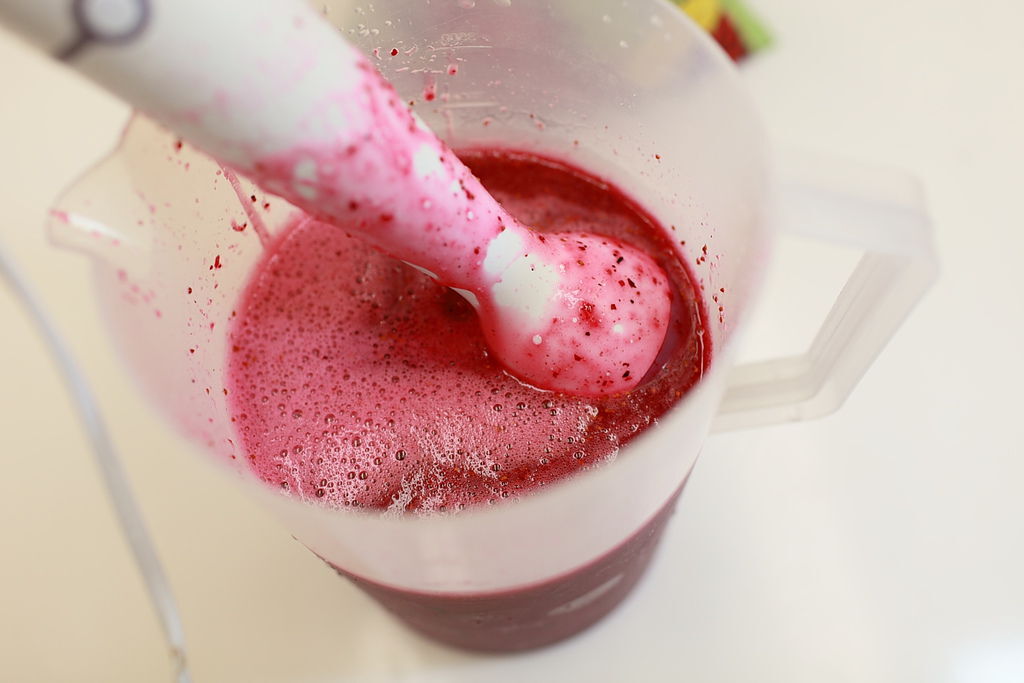 今天原本是專去買鮮奶的,隨便逛逛讓我發現了新鮮冷藏的藍莓,和冷凍庫裡的整顆蔓越莓。這兩種水果的混搭風很特別,藍莓的香氣和蔓越莓的酸勁,是很搭的。而且打出來的顏色是很PINKING的,這可是天然的色素,安心食用。