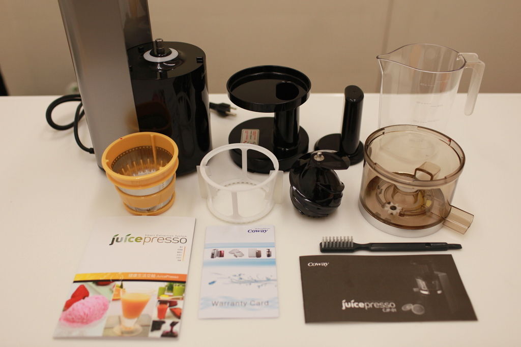 同樣是的功能除了Coway品牌所製的慢磨機,還有大長今-李英愛代言的HUROM品牌的慢磨機,都不錯、都很好,只是我比較喜歡Coway,因為造型比較時尚,看起來像咖啡機,而且還是少女時代代言的。而HUROM看起來像是在廚房裡的果汁機,在機器的挑選上,我又是外貌協會了。