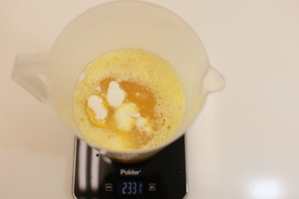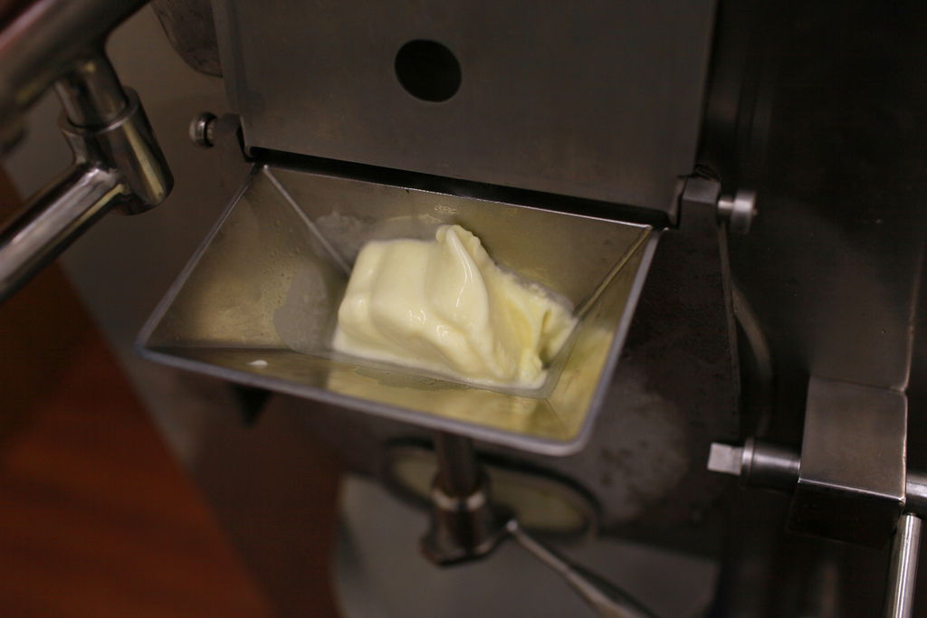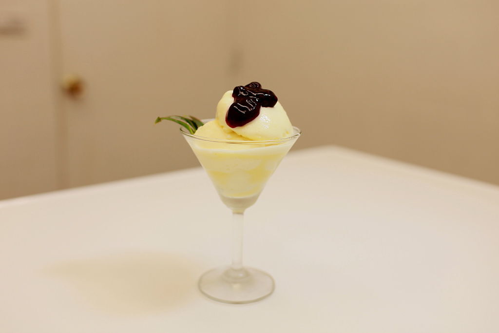 先將1.~4.項攪拌均勻後,投入製冰桶裡,再製作出冰淇淋,即可完成。