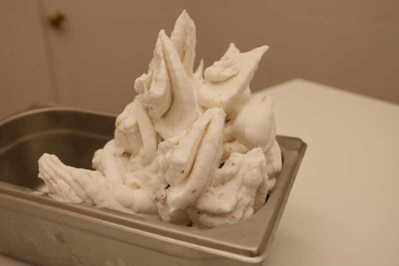 一、先將主原料1到5項以攪拌棒均勻後,整體倒入製冰桶製作出冰淇淋即可。