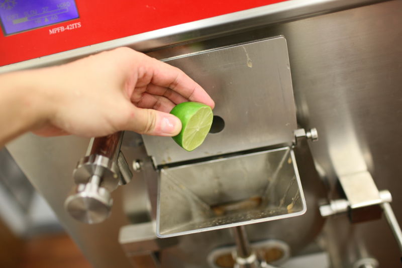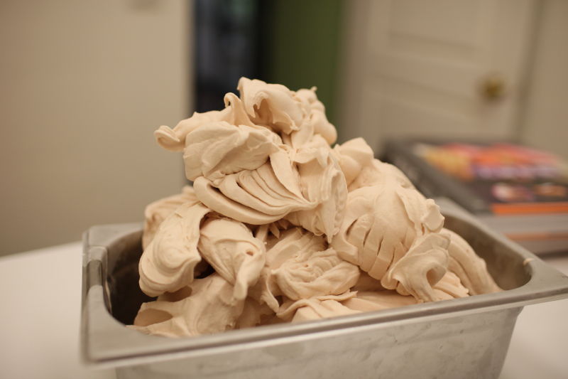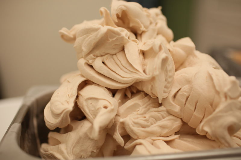 一、先將主原料1到5項以攪拌棒均勻後,整體倒入製冰桶製作出冰淇淋即可。