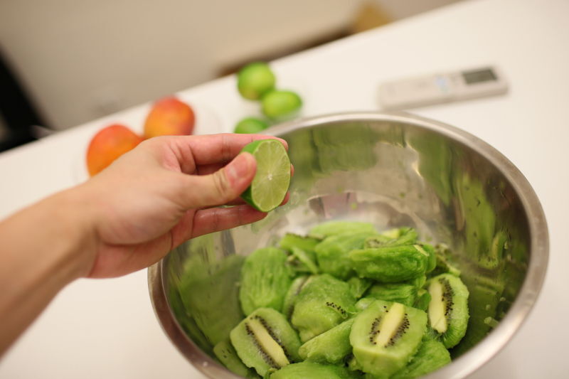 其實不加醬料也是很好吃的, 因為奇異果本身的香味和酸味就很足夠了, 反而是可以加一點檸檬香與酸味, 整個純水果的冰淇淋層次可以提升非常多。
