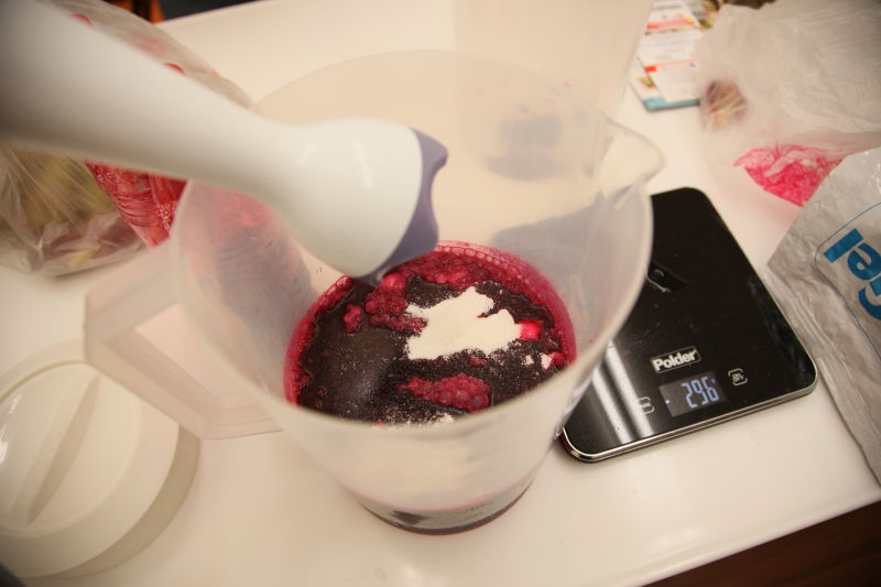手上都是仙人掌果所留下的天然色素,還好先替我處理好,省去了我不少的麻煩,接下來我們就開始按照冰淇淋基本的比例及配方來做冰淇淋了。