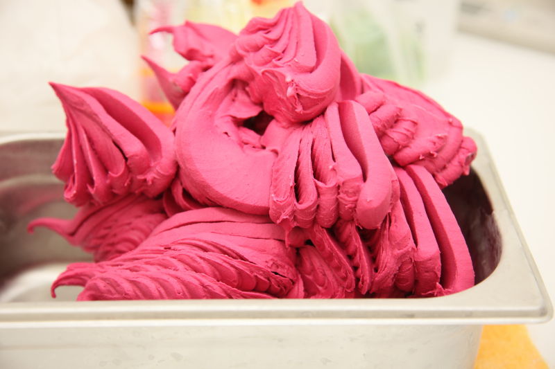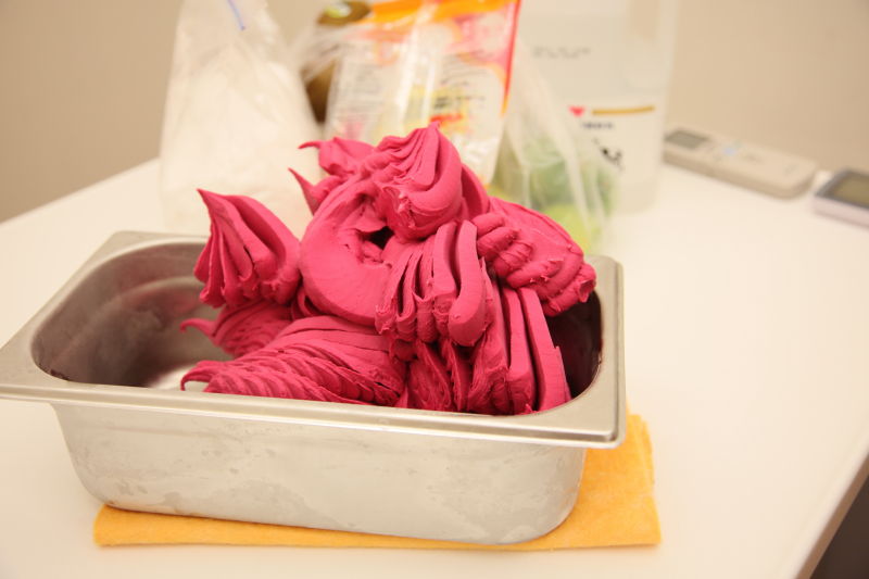 今天一連四堂的冰淇淋教學課,有三堂是小朋友來學冰淇淋的課,每個小朋友都滿認真的,還拿出筆記來抄寫,而且好期待快快能吃到冰淇淋。比較特別的是另一堂課,有個從澎湖來的朋友,拿了當地特產的仙人掌。說真的仙人掌冰淇淋還真的沒吃過呢,更別說沒做過,一開始還真不知道要從哪裡下手呢?不過,沒想到做出來的冰淇淋竟是這麼鮮艷,像是有螢光色一樣,真的很特別,吃在嘴裡也是整個紅紅的,還好這是天然的,澎湖來的朋友說,就是這樣沒錯。